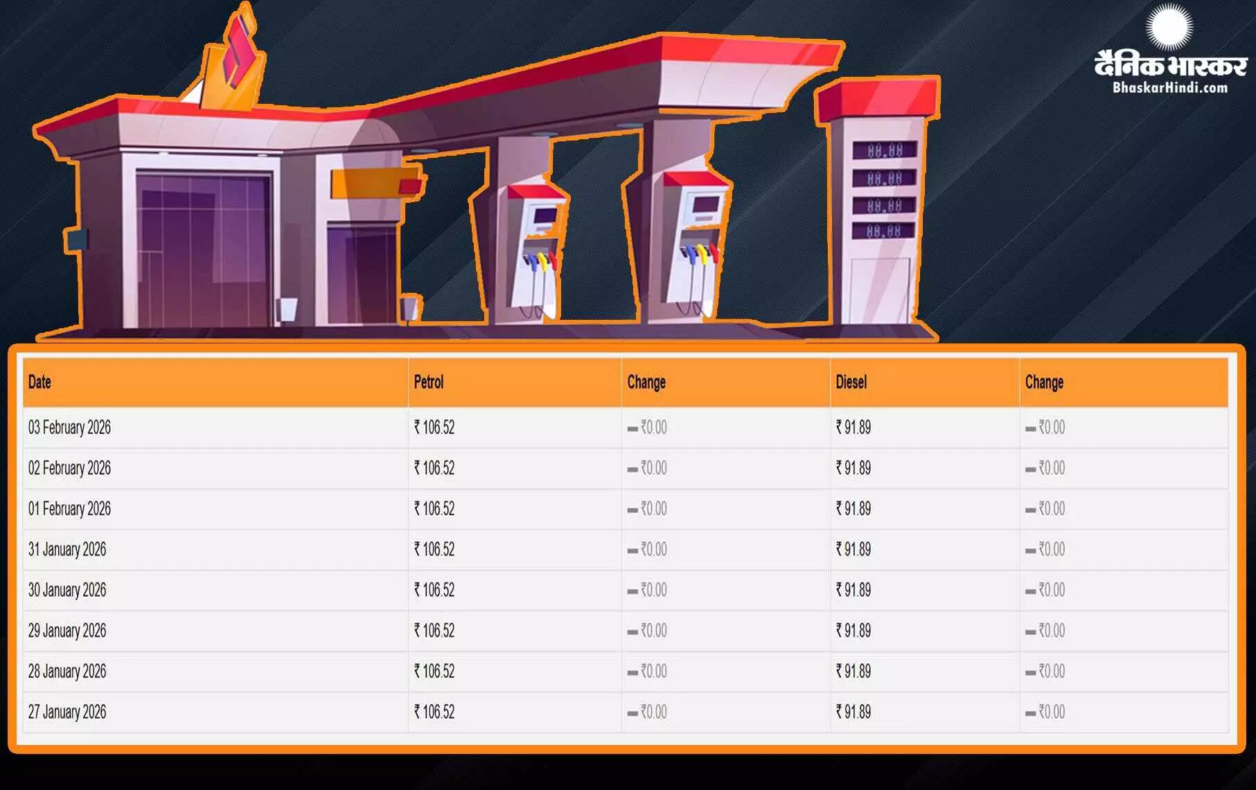 डिजिटल डेस्क, नई दिल्ली। देश में पेट्रोल और डीजल की कीमतों (Petrol Diesel Prices) में लगातार हलचल देखने को मिल रही है। फिलहाल, अंतर्राष्ट्रीय बाजार में कच्चे तेल की कीमत 66 डॉलर के नीचे आ गई हैं। इस बीच आज (03 फरवरी 2026, मंगलवार) सुबह सरकारी तेल विपणन कंपनियों (इंडियन ऑयल, भारत पेट्रोलियम और हिंदुस्तान पेट्रोलियम) ने ईंधन के ताजा रेट जारी कर दिए हैं। जिसके अनुसार, अलग- अलग राज्यों में भिन्न टैक्स सहित लोकल बॉडी टैक्स के चलते इनकी कीमतों में मामूली बदलाव देखने को मिला है। आइए जानते हैं लेटेस्ट रेट...