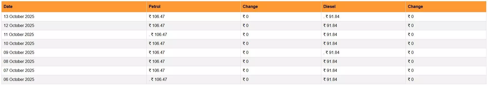 डिजिटल डेस्क, नई दिल्ली। देश में पेट्रोल और डीजल की कीमतों (Petrol Diesel Prices) में लंबे समय से कोई फेरबदल नहीं हुआ है। जबकि, अंतर्राष्ट्रीय बाजार में कच्चे तेल की कीमत 64 डॉलर के नीचे बनी हुई हैं। फिलहाल, आज (13 अक्टूबर 2025, सोमवार) भी सरकारी तेल विपणन कंपनियों (इंडियन ऑयल, भारत पेट्रोलियम और हिंदुस्तान पेट्रोलियम) ने रेट में किसी प्रकार का कोई बदलाव नहीं किया गया है। लेकिन, अलग- अलग राज्यों में भिन्न टैक्स सहित लोकल बॉडी टैक्स के चलते इनकी कीमतों में मामूली बदलाव देखने को मिला है। आइए जानते हैं लेटेस्ट रेट...
