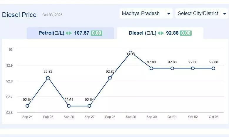 एमपी में ईधन की कीमत: मध्यप्रदेश में आज 03-अक्टूबर-2025 को डीजल की कीमत