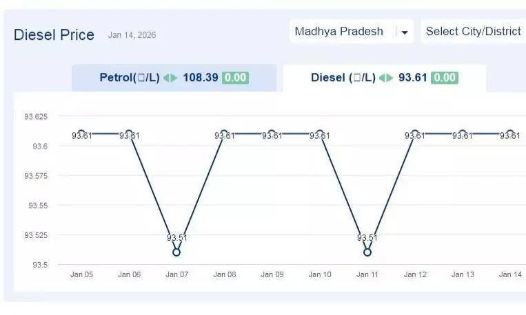 एमपी में ईधन की कीमत: मध्यप्रदेश में आज 14-जनवरी-2026 को डीजल की कीमत