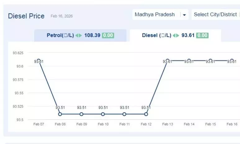 एमपी में ईधन की कीमत: मध्यप्रदेश में आज 16-फरवरी-2026 को डीजल की कीमत