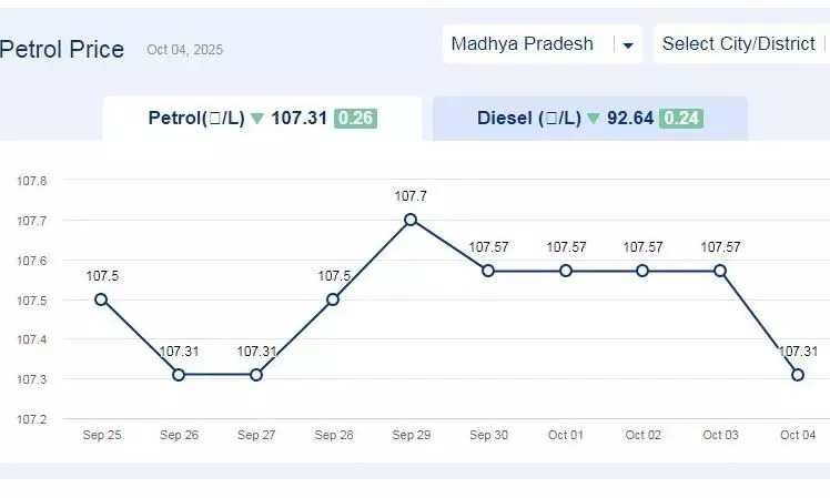 एमपी में ईधन की कीमत: मध्यप्रदेश में आज 04-अक्टूबर-2025 को पेट्रोल की कीमत