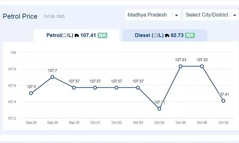 एमपी में ईधन की कीमत: मध्यप्रदेश में आज 08-अक्टूबर-2025 को पेट्रोल की कीमत