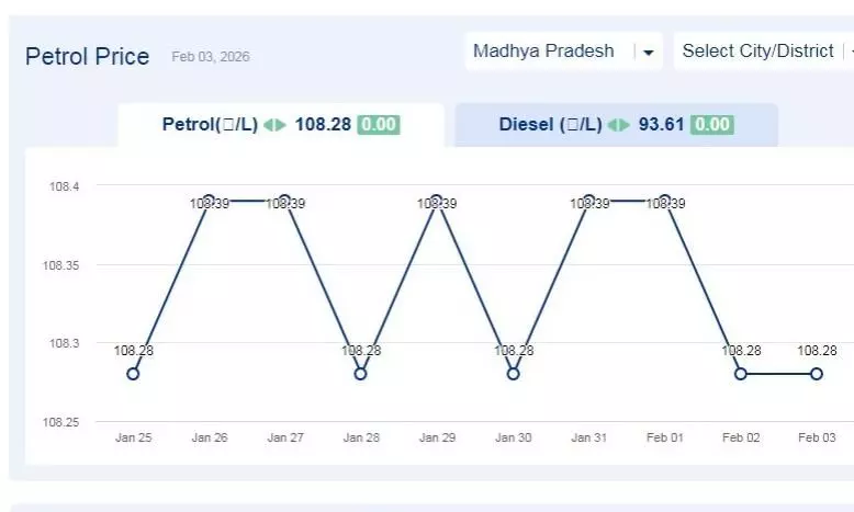 एमपी में ईधन की कीमत: मध्यप्रदेश में आज 03-फरवरी-2026 को पेट्रोल की कीमत