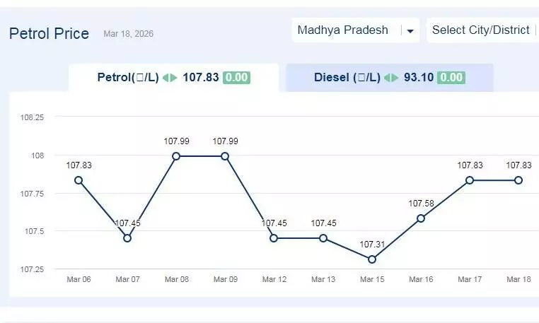 एमपी में ईधन की कीमत: मध्यप्रदेश में आज 18-मार्च-2026 को पेट्रोल की कीमत
