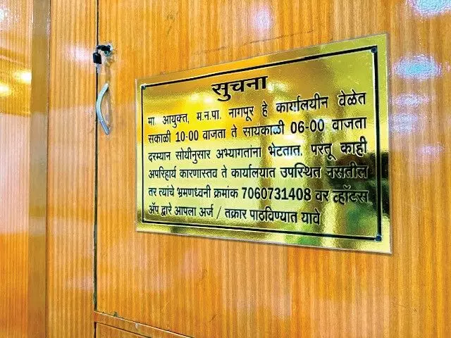मनपा आयुक्त डॉ. विपिन इटनकर के कक्ष के बाहर बोर्ड देखकर नागरिकों के साथ ही मनपा के अधिकारी भी हैरानी जता रहे हैं। बोर्ड पर सूचना लिखाई गई है, जिसमें कार्यालय में उपस्थित रहने का समय सुबह 10 से शाम 6 बजे तक का निर्धारित किया गया है। इस समयावधि में मुलाकात नहीं होने की स्थिति में डॉ. इटनकर के निजी मोबाइल क्रमांक 7060731408 पर नागरिकों से शिकायत भेजने का अाह्वान किया गया है। यहीं नहीं आयुक्त कार्यालय अथवा संबंधित कार्यालय में शिकायत को लिखित रूप में देने के बाद मोबाइल से फोटो लेकर वाट्सएप भी किया जाता है। अपने मोबाइल पर मिलने वाली शिकायतों को आयुक्त सीधे तौर विभाग प्रमुखों के वाट्सएप ग्रुप में साझा करते हैं।
