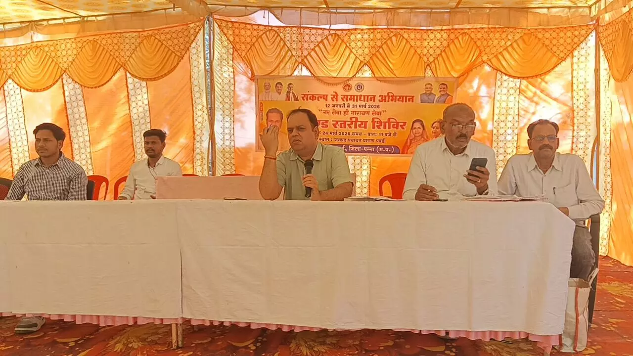Panna News: मध्य प्रदेश सरकार द्वारा 12 जनवरी से 31 मार्च 2026 तक एक प्रमुख जन कल्याणकारी पहल संकल्प से समाधान अभियान का आयोजन किया जा रहा है। जिसका उद्देश्य केंद्र और राज्य की विभिन्न योजनाओं का लाभ पारदर्शी एवं डिजिटल तरीके से पात्र लाभार्थियों तक पहुंचना है। इस अभियान के अंतर्गत 106 से अधिक योजनाओं का लाभए उनसे जुड़ी शिकायत आदि का निराकरण शिविरों के माध्यम से किया जा रहा है। इसी के तहत मंगलवार को जनपद पंचायत परिसर पवई में संकल्प से समाधान अभियान के तहत खण्ड स्तरीय शिविर का आयोजन मुख्य अतिथि जनपद अध्यक्ष श्रीमती मोहनी आनंद मिश्रा की अध्यक्षता में संपन्न हुआ। इस दौरान विभिन्न विभागों के खंड स्तरीय अधिकारियों के द्वारा मौके पर प्राप्त विभिन्न विभागों की समस्याओं का समाधान किया गया साथ ही योजना से जुड़े आवेदन भी लिए गए।