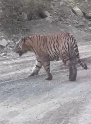 सैकडों वाहनों व भारी मशीनों, कर्मचारियों की आवाजाही के बीच बाघ ने इस क्षेत्र में अपनी हुकुमत का एलान कर दिया है। एनएमडीसी परियोजना के अधिकारियों को काफी समय तक बाघ का दीदार किया। अपनी मदमस्त चाल से ठहलता हुआ बाघ कुछ देर बाद लोगों की नजरों से ओझल भी हो गया। प्रत्यक्षदर्शियों ने वनराज के एनएमडीसी मझगवां हीरा खदान क्षेत्र तक पहुंचने का वीडियो भी बनाया जो कि सोशल मीडिया में आज तेजी के साथ वायरल हो गया है। बताया जा रहा है कि बाघ पिछले कुछ दिनों से एनएमडीसी हीरा खदान उत्खनन क्षेत्र के पास ही घूम रहा है। कुछ कर्मचारियों का कहना है कि कई बार वह खदान क्षेत्र में काम करते हुए बाघ को पास से देख चुके हैं। अवगत हो कि पन्ना टाइगर रिजर्व में बाघों की आबादी लगातार बढती जा रही है। पन्ना टाइगर रिजर्व के कोर क्षेत्र की सीमा को पार करते हुए बफर क्षेत्र व सामान्य वन क्षेत्र में बाघों के पहुंचने की कई घटनायें सामने आ चुकीं हैं परंतु एनएमडीसी जैसे क्षेत्र में बाघ की दस्तक बडी चिंता का विषय कहा जा सकता है। वन्य जीव विशेषज्ञ बाघ की सुरक्षा की दृष्टि से इसे खतरनाक मान रहे हैं।