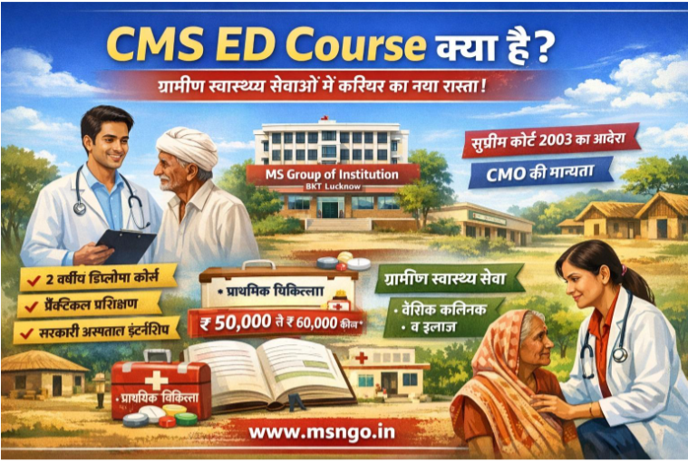 ग्रामीण क्षेत्रों में स्वास्थ्य सेवाओं की कमी आज भी एक बड़ी समस्या है। ऐसे में CMS ED Course (Community Medical Services & Essential Drugs) उन युवाओं के लिए एक महत्वपूर्ण अवसर बनकर उभरा है, जो प्राथमिक स्वास्थ्य सेवाओं में अपना योगदान देना चाहते हैं।