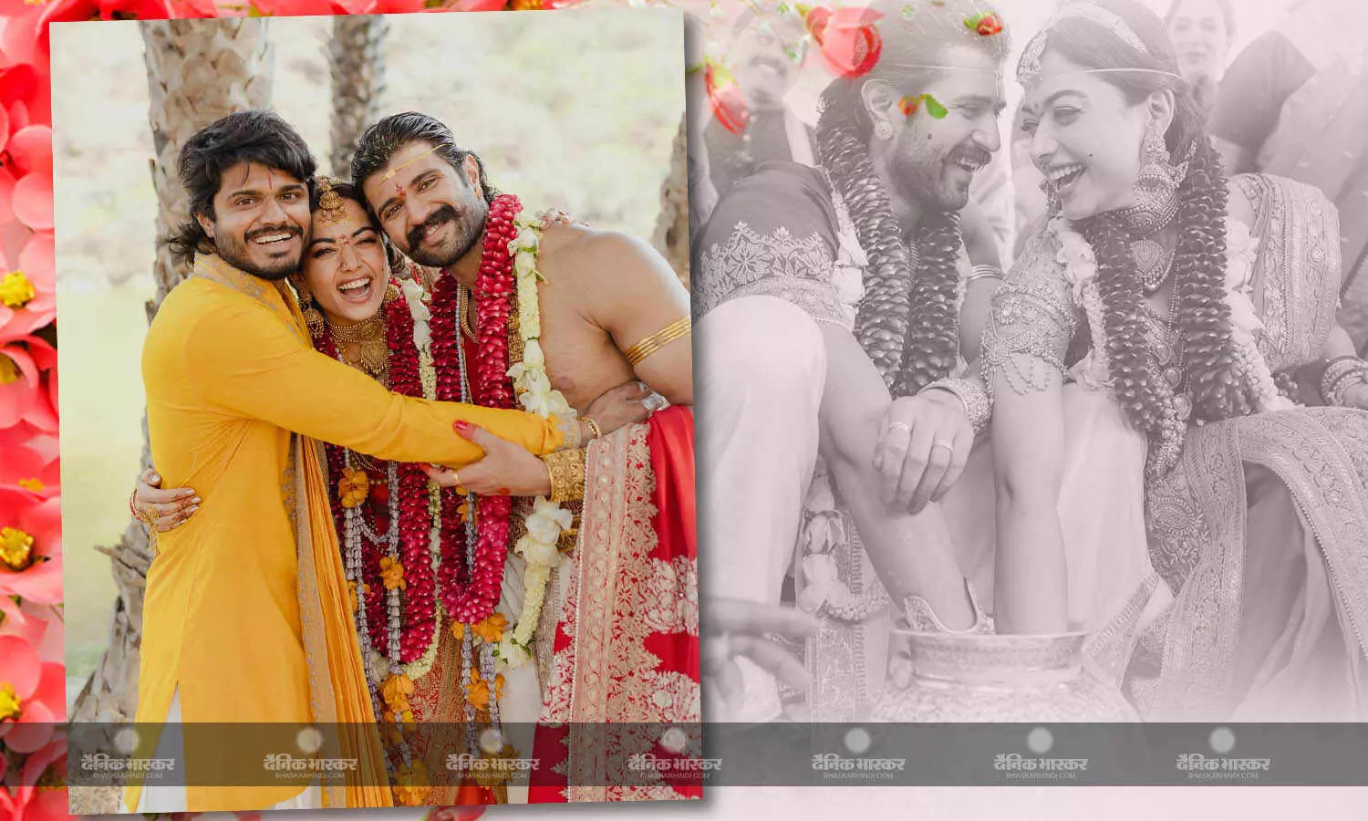 डिजिटल डेस्क, मुंबई। विजय देवरकोंडा और रश्मिका मंदाना कल यानी 26 फरवरी 2026 को शादी के बंधन में बंध गए हैं। इन दोनों की शादी की तस्वीरे जैसे ही सोशल मीडिया पर आईं फैंस के बीच चर्चा का विषय बन गईं हैं। कपल के लुक ने हर किसी का दिल जीत लिया है। अपनी शादी में विजय और रश्मिका बेहद खूबसूरत लग रहे थे अब सोशल मीडिया पर एक और फोटो सामने आई है, जिसमें कपल विजय के भाई आनंद देवरकोंडा के साथ पोज देते नजर आ रहे हैं।