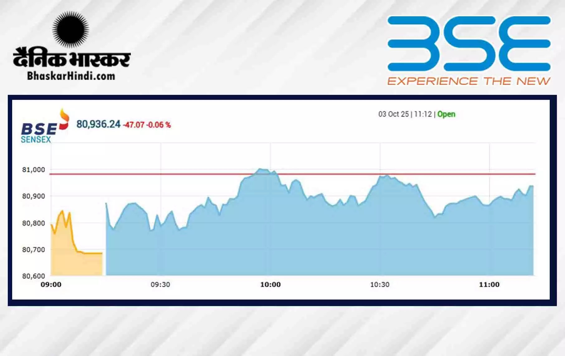 डिजिटल डेस्क, मुंबई। मिश्रित वैश्विक संकेतों के बीच देश का शेयर बाजार (Share Market) कारोबारी सप्ताह के पांचवें और आखिरी दिन (03 अक्टूबर 2025, शुक्रवार) गिरावट के साथ खुला। इस दौरान प्रमुख भारतीय इक्विटी सूचकांक बीएसई सेंसेक्स (Sensex) और एनएसई निफ्टी (Nifty) दोनों ही लाल निशान पर रहे। बंबई स्टॉक एक्सचेंज (BSE) के 30 शेयरों पर आधारित संवेदी सेंसेक्स 138.49 अंक यानि कि 0.17 प्रतिशत की गिरावट के साथ 80,844.82 के स्तर पर खुला।