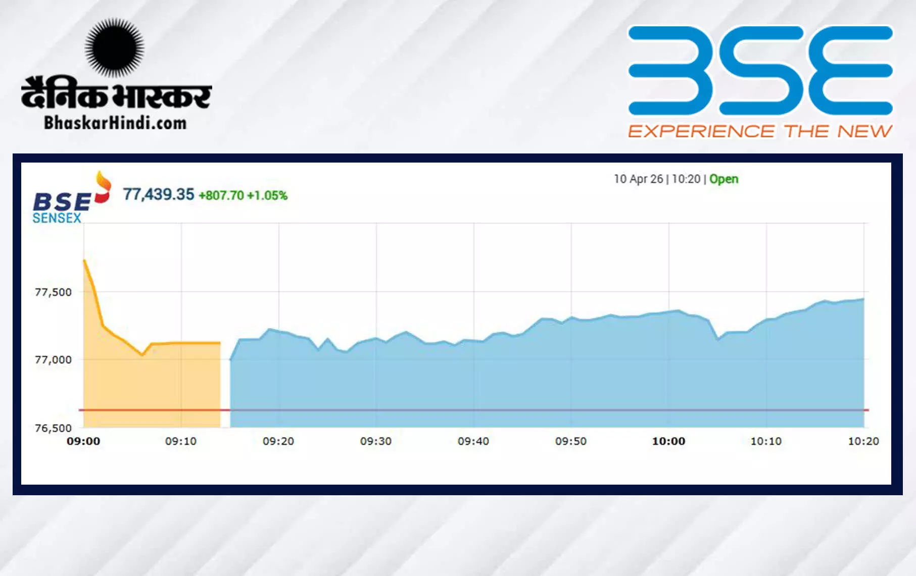 डिजिटल डेस्क, मुंबई। सकारात्मक वैश्विक संकेतों के चलते देश का शेयर बाजार (Share Market) कारोबारी सप्ताह के पांचवें और आखिरी दिन (10 अप्रैल 2026, शुक्रवार) बढ़त के साथ खुला। इस दौरान प्रमुख भारतीय इक्विटी सूचकांक बीएसई सेंसेक्स (Sensex) और एनएसई निफ्टी (Nifty) दोनों ही हरे निशान पर रहे। बंबई स्टॉक एक्सचेंज (BSE) के 30 शेयरों पर आधारित संवेदी सेंसेक्स 525.56 अंक यानि कि 0.69 प्रतिशत ऊपर 77,157.21 के स्तर पर खुला।