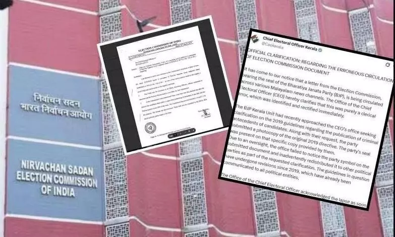 चुनाव आयोग ने कहा, 'हमें यह जानकारी मिली है कि बीजेपी की मुहर लगी चुनाव आयोग की एक चिट्ठी कई मलयालम न्यूज चैनलों पर प्रसारित की जा रही है. मुख्य निर्वाचन अधिकारी (सीईओ) का कार्यालय स्पष्ट करता है कि यह केवल एक क्लेरिकल एरर थी, जिसे तुरंत पहचान कर सुधार लिया गया.'