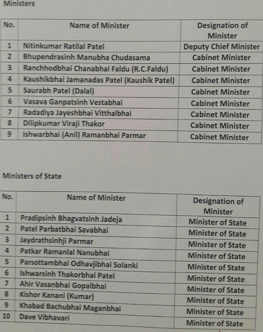 11: 45 बजे : सौरभ पटेल ने कैबिनेट मिनिस्टर की शपथ ली। सौरभ पटेल सौराष्ट्र के बोटाद जिले से विधायक हैं और कड़वा पाटीदार समाज से आते हैं।