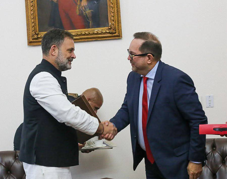 नई दिल्ली, 3 अक्टूबर (आईएएनएस)। लोकसभा के नेता प्रतिपक्ष राहुल गांधी ने कोलंबियाई सीनेट के अध्यक्ष लिडियोस गार्सिया और गणराज्य पेरू के कांग्रेसजनों एवं विदेश मामलों के आयोग की अध्यक्ष हेइडी लिस्बेथ जुआरेज कैले, सदस्यों मार्लेनी पोर्टेरो एवं डिग्ना कैले से मुलाकात की। इसकी जानकारी इंडियन ओवरसीज कांग्रेस ने दी।