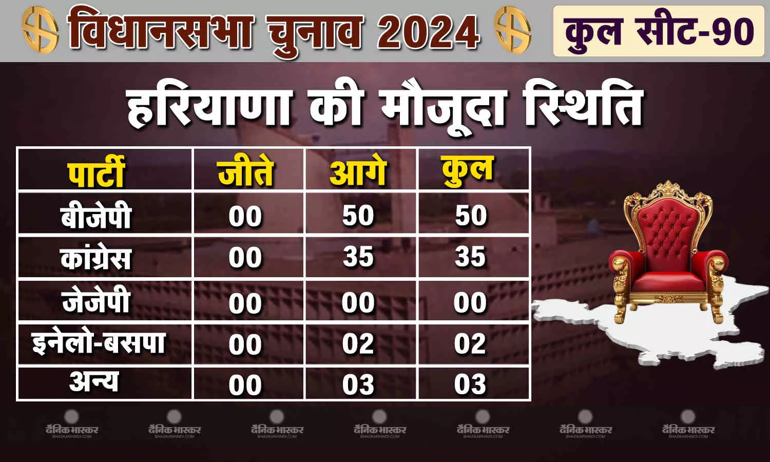 डिजिटल डेस्क, नई दिल्ली। हरियाणा विधानसभा चुनाव में आज रिजल्ट का दिन है। वोटों की गिनती लगातार जारी है। एग्जिट पोल के हिसाब से हरियाणा में कांग्रेस भारी बहुमत से सरकार बनाने की ओर बढ़ रही थी। लेकिन वोटों की गिनती के बाद एग्जिट पोल के रिजल्ट उल्टे पड़ते दिख रहे हैं। हरियाणा में वोटों की काउंटिंग के बाद ऐसा दिख रहा है कि भारतीय जनता पार्टी हैट्रिक लगा सकती है। दोपहर 2 बजे तक बीजेपी 48 सीटों के साथ आगे चल रही है। वहीं, कांग्रेस 37 सीटें जीत चुकी है। इस बार विधानसभा चुनाव में मुख्यमंत्री नायब सिंह सैनी समेत भाजपा के 10 मंत्रियों ने अपनी किस्मत आजमाई है। चलिए जानते हैं वोट की लड़ाई में किन मंत्रियों ने जीत हासिल की है और किन्हें हार का स्वाद चखना पड़ा है।