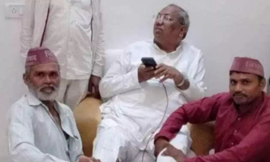 कैबिनेट मंत्री संजय निषाद का पैर दबवाते फोटो वायरल, कांग्रेस बोली- इनकी आंख का सारा पानी सूख गया